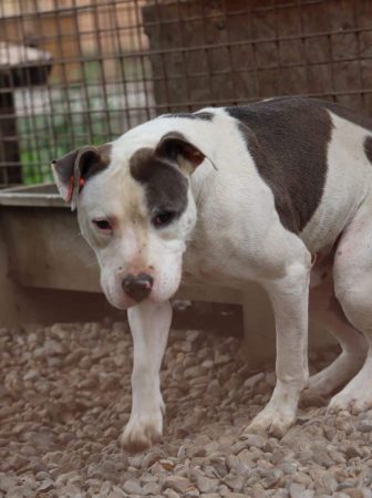 Ich bin eine American Staffordshire-Terrier-Mix-Hündin – stark, wunderschön und mit einem großen Herz.